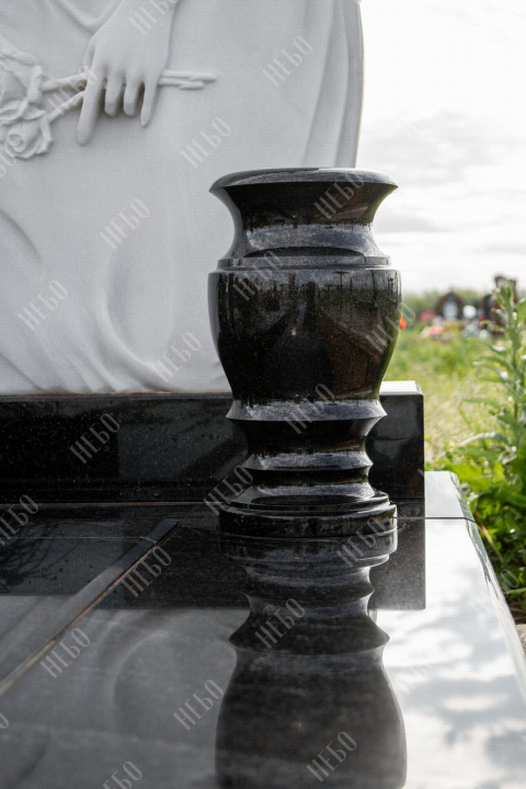Памятник фрезерный с фигурой ангела и открытым надгробием. Использование фрезеровки в изготовлении ритуальных изделий гарантирует высочайшую точность исполнения запланированного дизайна. С помощью этой технологии в камне высекаются углубления по заданным макетам, придавая памятнику объем, позволяя комбинировать различные элементы и создавать сложные фигуры. На фрезерованном памятнике удачно контрастируют цвета и в солнечную погоду играют тени от объемных деталей. Размеры стелы и надгробия соответствуют заданным нормам при имеющейся нагрузке и исключают деформации изделия со временем.