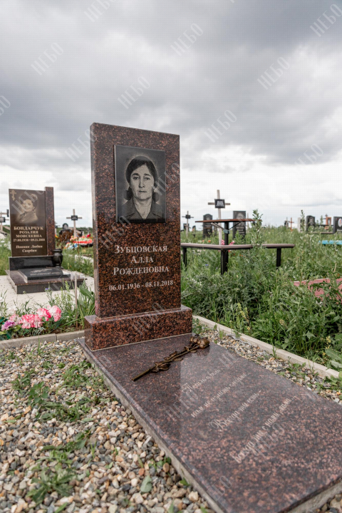 Фото на ритуальном изделии изготовлено методом гравировки алмазными иглами на черном граните. Далее фотография вставлена в памятник из выбранного материала, создавая эффект контрастности. Такой способ вставки изображения применяется в случае изготовления памятника из материалов светлых, серых, коричневых и других оттенков, гарантируя фотографии четкость и наилучшее качество, а готовому изделию долговечность. Благодаря использованию технологии гравировки на граните, фото не потускнеет со временем, не исказится и сохранит первозданный вид десятки лет.