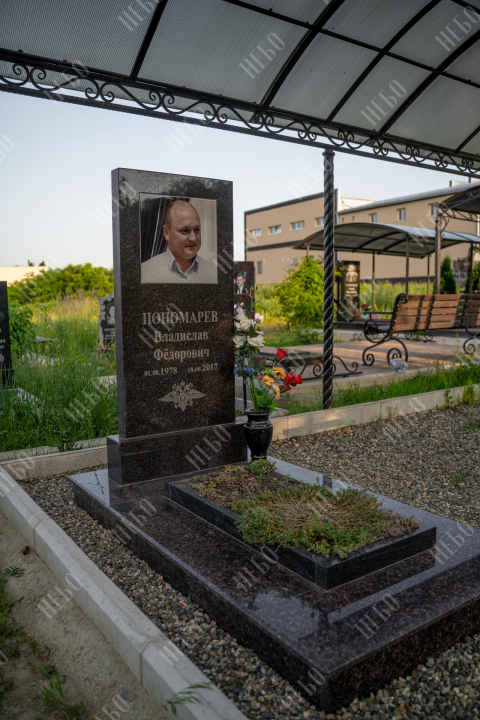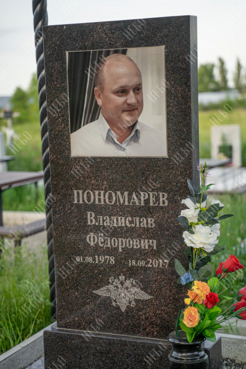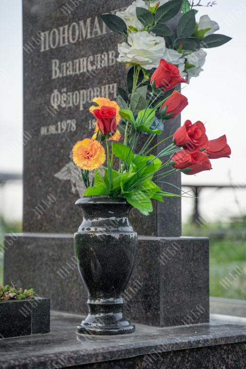 Прямой памятник с гранитной вазой и открытым надгробием выполнен в строгом лаконичном стиле с использованием четких геометрических линий. Темные оттенки и прямоугольные формы стелы и надгробия являются классической комбинацией, которая часто используется при изготовлении памятников. Открытое гранитное надгробие позволяет высадить на поверхности цветы и другие растения. При изготовлении памятника специалисты тщательно прорабатывают соотношение форм, размеров и нагрузку, чтобы исключить деформации и искажения изделия со временем.